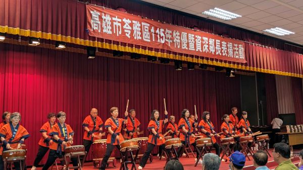 此外,活動特別邀請社團法人高雄市音樂養生慈善公益協會參與演出,以氣勢磅礡的太鼓表演揭開序幕,並帶來〈為你打拼〉、〈戰馬〉及〈可愛的玫瑰花〉等多首精彩曲目,現場氣氛熱烈。活動最後,鄭區長與鄰長們合影留念,並再次表達肯定與感謝,期勉鄰長持續發揮服務精神,與區公所攜手推動在地發展,共同打造幸福宜居的苓雅區。